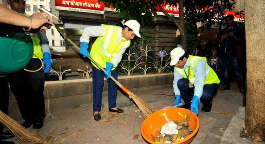 [caption id=“attachment_108013” align=“alignleft” width=“860”]  Managing Director of ICICI bank Chanda Kocchar became the latest to join the Swachh Bharat campaign. Image courtesy: Twitter[/caption]