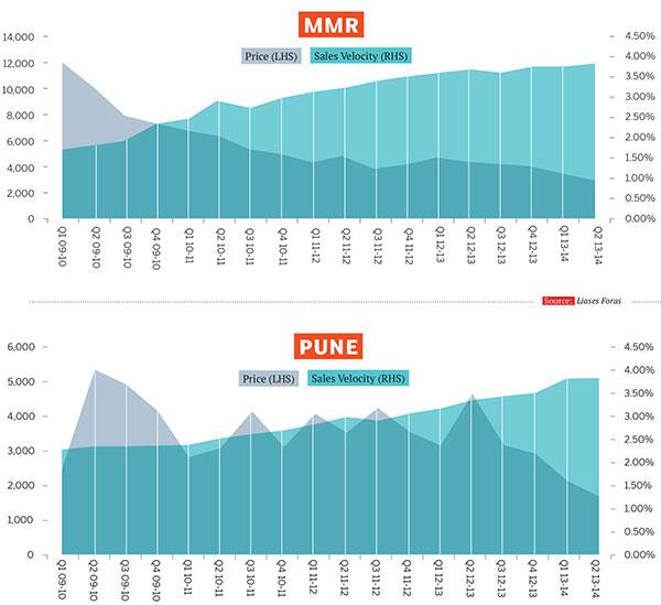 After that, the MMR market with sky-high price levels and declining sales velocity was considered an unproductive arena and the funds inflow reduced. By sales velocity, we mean the ratio between monthly sales and total supply. The price rise after this, though persistent, has been comparatively slow. It is also interesting to note that even after a slow growth rate of prices, the pace of offtake has been slowing.