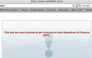 On Thursday night, says Techtree, “many Indian internet users were shocked to find their favourite file-sharing websites banned. Members of the India Broadband Forum reported that visiting popular websites such as Megaupload, RapidShare, MediaFire, DepositFiles, and others served up a static page saying that the “site has been blocked as per instructions from the Department of Telecom”. This ban was reported by subscribers of major ISPs,including Reliance, MTNL, and Airtel.”