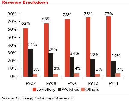 Apart from that, valuations of Titan are high at the moment with the stock trading at 28 times expected earnings for financial year 2013. For better returns from this level, the earnings trajectory of Titan must move to a better level which looks unlikely with the government proposals in the Budget.