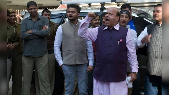 BJP activists, led by MLA Vijay Jolly (pictured above), today protested outside Chaudhury’s home despite the fact that she had tendered her resignation today. Naresh Sharma/ Firstpost