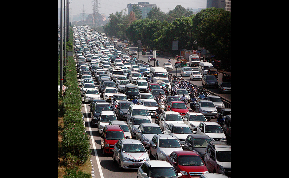 While Gurgaon was supposed to observe Care-free Day on Tuesday, this is how the traffic on Gurgaon- Delhi Expressway looked. PTI