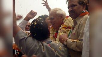 Firecrackers explode sending sparks into the air. And the air becomes thick with showers of rose petals and rose buds, erupting at the candidate and the crowd almost like a fusillade from a firing squad. Sibal smiles gamely and waves to women standing on balconies and bends down to accept yet another garland, his white hair already spattered with rose petals.