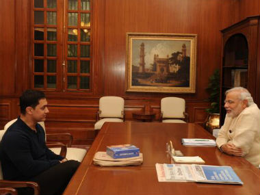Aamir Khan, who has been championining a raft of social issues met Prime Minister Narendra Modi on Monday to discuss the problems which he highlights in his TV programme Satyamev Jayate. Khan tweeted out about his meeting with PM as well saying, “Just came out of my meeting with Honorable Prime Minister of India Shree Narendra Modiji. Was very kind of him to spare his valuable time." He added in another tweet, “Shared with him the overwhelming support that we got from people across the country through ‘Vote for Change’ campaign on SMJ (Satyamev Jayate) on the various issues that we tackled in our show. He has assured me that he will look into all the matters.” Khan also tweeted out a picture of Modi and him interacting in the PM’s office. The ‘Vote for Change’ episode, which was aired in the run up to the last Lok Sabha elections, focused on criminalisation of politics in India while urging the voters to cast their votes to make a difference. [caption id=“attachment_1586049” align=“alignleft” width=“380”] Aamir Khan and Narendra Modi during the meeting. Image from Twitter[/caption] Below are his tweets:
