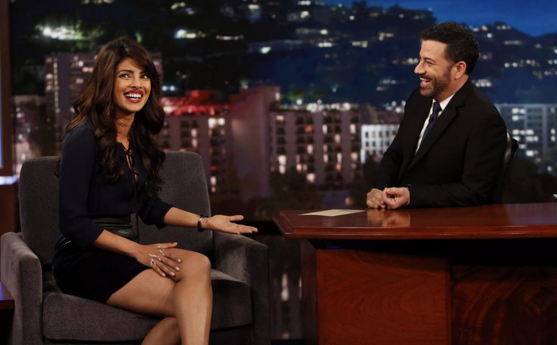 Priyanka Chopra has taken America by storm. The Bollywood star debuted on her first network show Quantico whose first episode has so far has gotten rave reviews. Now, she’s also wowing audiences on the popular night show Jimmy Kimmel Live! The show premiered to 7.1 million viewers breaking ABC’s records for Brooklyn Nine Nine and CSI. [caption id=“attachment_2449850” align=“alignleft” width=“380”]  Priyanka Chopra’s Twitter account.[/caption] She was seen in a sleek navy blue dress with a thick black leather belt cinched at the waist, and she completed her daytime look with a pair of Christian Louboutin pumps. Not only did she talk about her character, Alex Parrish, but she also talked about coming to America for the first time as a 12-year old, her taste in men and her future as ‘Mrs Tupac Shakur’. She also revealed her reason for moving to the US. “I came here when I was 12 years old and it was a whim honestly. In India, when you go to school, you have to wear uniforms but here, you don’t have to do that,” she told the host. Priyanka received high praise from Jimmy Kimmel who said he thought it was a “great show.” But the highlight of the show was when the actress revealed her second love after Tupac and you will never guess who it is. Dennis Rodman. “I moved on as a rebound crush to Dennis Rodman. In my defence, it was before the Wedding Dress and he was still with the Bulls. I loved what he did with his hair,” she said. Her co-guest for the night was Hollywood A-lister Matt Damon who was there on the show as well to promote his film The Martian. Here’s a sneak peak of Priyanka Chopra getting ready backstage.