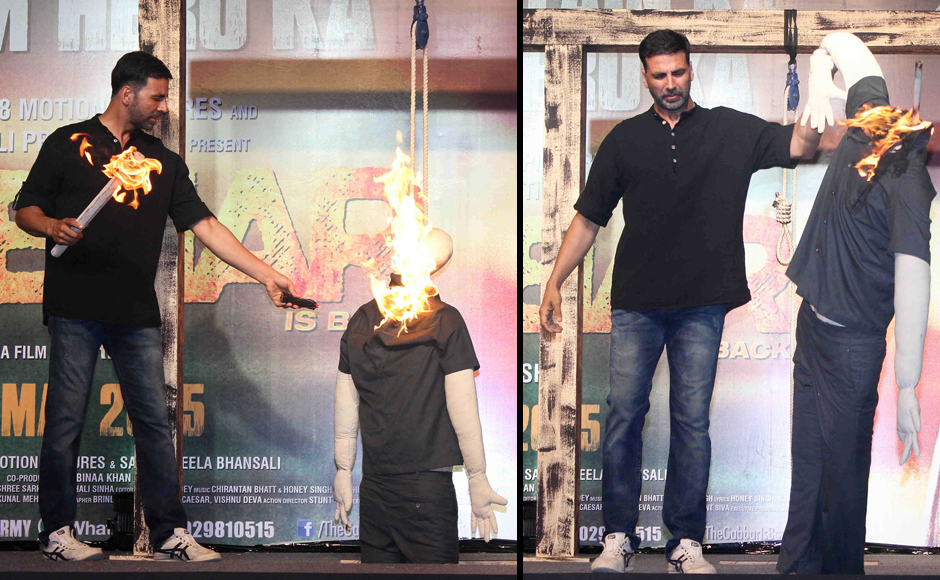 Akshay Kumar also burned effigies at the trailer launch of Gabbar Is Back, which is a film about a man who takes on the corrupt system. Solaris Images