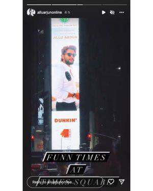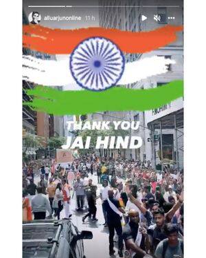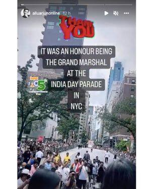 Allu Arjun appears to be leaving no stones unturned to make India proud. The south superstar recently represented India in New York at the India Day Parade, which is billed as the world’s biggest annual event organised by the Indian diaspora in the United States. Now, taking to the story of his official Instagram account, the actor shared several glimpses of his grand appearance at the well-known event in NYC, which celebrated India’s 75th Independence Day. Several videos making rounds on the internet reveal that the actor was accompanied by his wife Sneha Reddy. While sharing the video of himself waving the Indian National Flag, Arjun wrote in the caption, “It was an honour being the grand marshal at the India Day parade in New York.” Clad in white formals Arjun can be seen standing on an open-top vehicle and waving to the cheering fans and followers. The video shows Sneha standing next to Arjun in a beautiful yellow saree. In the next video, Arjun captured a glimpse of a plethora of crowd, who appeared extremely excited witnessing the actor. In one of the videos, Arjun has a huge LED screen in Time Square that features his stunning image, then he pans the camera to himself. While sharing that video, Arjun wrote in the supers, “Fun Times at Times Square.”