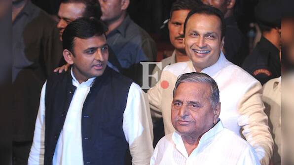 Akhilesh Yadav, Mulayam Singh Yadav and Anil Ambani at the party. Sachin Gokhale/Firstpost