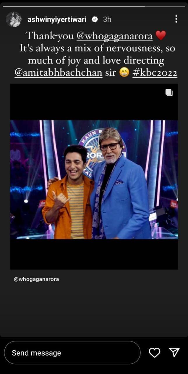 Ashwiny Lyer Tiwari took her social media and shared a story expressing her love and gratitude for directing Amitabh Bachchan for KBC 2022.