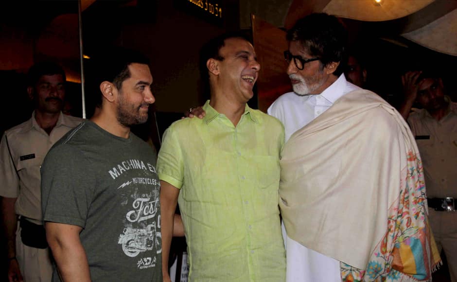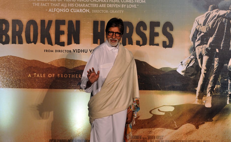 [caption id=“attachment_2145903” align=“aligncenter” width=“940”]  Vidhu Vinod Chopra at the launch of the trailer of his debut Hollywood film, Broken Horses. Also seen in the photo Amitabh Bachchan and Aamir Khan in Mumbai. Solaris Images[/caption] [caption id=“attachment_2145905” align=“aligncenter” width=“940”]  Vidhu Vinod Chopra shares a laugh with Amitabh Bachchan at the trailer launch of Broken Horses. Also in the photo Aamir Khan. Solaris Images[/caption] [caption id=“attachment_2145909” align=“aligncenter” width=“940”]  Aamir Khan at the trailer launch of Vidhu Vinod Chopra’s Hollywood debut, Broken Horses. Solaris Images[/caption] [caption id=“attachment_2145913” align=“aligncenter” width=“940”]  Aamir Khan who has been gaining weight for his film, Dangal, looked beefed-up in a grey t-shirt. Also in the photo, Vidhu Vinod Chopra and Amitabh Bachchan. Sachin Gokhale/ Firstpost[/caption] [caption id=“attachment_2145911” align=“aligncenter” width=“940”]  Amitabh Bachchan waves to the shutterbugs at the screening of Broken Horses. Sachin Gokhale/ Firstpost[/caption]