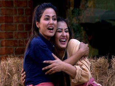 Hina Khan and Shilpa Shinde in a still from Bigg Boss 11[/caption]