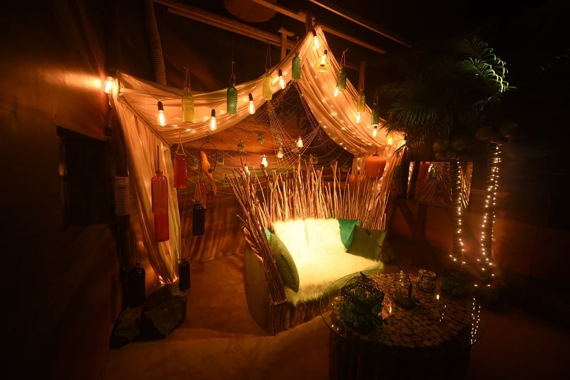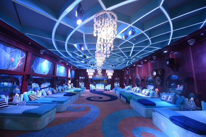 Colors’ biggest reality show Bigg Boss 12 launches today (16 September) and amidst the dreamy beach theme, the show will pack a punch with its_‘vichitra’_ jodis. The pairs will battle it out to survive 100+ days under the constant glare of 89 cameras and host, superstar Salman Khan’s supervision. This luxurious home, adorned with outlandish and aesthetic elements, covered in lively hues of blues, turquoise, teal and pearl ice has been designed by art director and Bollywood’s design expert, Omung Kumar. “Last year, when we left the house, we had decided the theme of beach-house for this year. It has lent to different elements like the underwater mystique to the décor with a lot of shells and watery tones to bring out the beauty of the sea. Designing the Bigg Boss house is always a great play, and if the theme is decided beforehand then the launch of the show can be different, that place from where Salman talks can be designed accordingly. Also, designing the house becomes relatively easier,” says Kumar. [caption id=“attachment_5193111” align=“alignnone” width=“825”]  The common area[/caption] “Themed around a modern, luxurious, holiday destination, the entire house will be a visual treat for the viewers. With the picturesque elements all over the Bigg Boss house, one will feel like they have entered a vibrant aquatic castle. From colorfully modern to tastefully rustic, these spaces showcase the best of a seaside decor. If you want to experience coastal living, you will find plenty of inspiration here," he added. For Omung, the confession room is the highlight this season. “Because of the colour, texture and pattern, it is like you are sitting inside a bohemian tent, on a ’throne’, and having a one-on-one conversation with Bigg Boss under the sky. Just that the backrest of the seat is a bit uncomfortable, it is made out of tree twigs. Beaded embellishments, tassels, colourful lanterns, cushions, a low wooden table adds to flare and elegance of the space. The goal is to make this room reflect the contestants’ spontaneity and make them pour their hearts out,” says Omung, who, along with his wife, Vanita, production designer, takes two months to design the house which happens during monsoon. [caption id=“attachment_5193091” align=“alignnone” width=“825”]  The Bigg Boss 12 confession room[/caption] Every year, Omung says, the biggest challenge is to cover the big beam in the grand, spacious living room, in an innovative manner. “For that we have well-crafted sea creatures on the walls and a huge tree trunk with glowing fairy lights and millions of small shells, along with potpourri hanging that adds to the exuberance and charm of the room. The collection of sea creatures like seahorse, starfish, oysters…flanked on one of the walls gives a coastal feel to the space, as does beneath the vanity. It feels as if you are sitting under a starlit sky,” says the art director, who has tried to use boat shape in different variations. “Boat forms can be used on the ceiling to make a lampshade, or on the walls to make a bookshelf and if cut into half it can be placed in the lounge area,” he says, further adding, “The living room is designed by bringing together eclectic pieces to cultivate that extra homely feeling. Vibrant citrus seating livens up the living room and pairs well with the whitewashed wooden wall paneling.” However, according to Abhishek Rege, CEO, Endemol Shine India, it isn’t going to be so easy for the contestants even as they will be “lured by the beachy tranquil décor”. “The out-of-the-box tasks will quickly pull them back to reality. This year, we have planned new twists and surprises for contestants that will test their compatibility, resilience and showcase their ability to bring the best or worst out of each other,” said Rege. Adds Omung, “And hopefully the hues will be soothing to the eyes and help the contestants maintain a calm demeanor." [caption id=“attachment_5193071” align=“alignnone” width=“825”]  The kitchen[/caption] Since the kitchen is one of the most important spaces as lot of time is spent in the area for what one may call ‘kitchen politics’, wooden shutters, mounted sequin dolphins and the colourful crockery makes the kitchen and dining area seem in sync with the rest of the house. A huge wooden boat hung upside down over the enormous dining table is a chandelier and is definitely a masterpiece. “The kitchen plays a huge role in the show especially since there is this superstition, the thumb rule, that whoever rules the kitchen, or whoever cooks for everyone wins the season,” laughs Rege. With more double beds than single ones as the contestants will come in pairs, one of the walls in the bedroom create an illusion of underwater with sea animals painted on it. “The bedroom theme is underwater and it will give them the feeling as if their bed is in water. Shades of blue makes you feel as if you are dancing with the waves. Also, it will depend upon the contestants that who will get to occupy single or double bed. They will have to invent and reinvent for that,” says Omung. [caption id=“attachment_5193101” align=“alignnone” width=“825”]  The bedroom[/caption] Coming to the swimming pool, that sandy beach feel has been added subtly to it, says Omung. “We cut the pool and introduced a bit of slope which becomes sand and brings the Goa feel in a small way,” he says. Besides the pool, the porch area has a gym in one corner and a special porch seating designed in the shape of a boat. “At this perfect setting, I guess secrets will be shared, conversations will get friendlier and there could be even romantic moments under the starlit sky. In fact, the varied hues and shack-ish furniture, sets an informal backdrop and will add more zest to their leisure sessions,” says Omung, who decided to give some extra storage for the contestants to keep their clothes nea