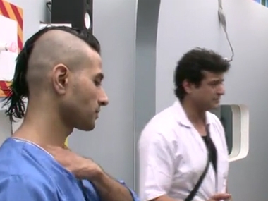 The inmates of the Bigg Boss house are under shock. Literally. In the latest episode of Bigg Boss Saath 7 we saw Pratyusha succumbing to the pain of getting electric shocks and leaving a task half done. Not only that, we also saw Apoorva Agnihotri get a mohawk haircut. [caption id=“attachment_1150743” align=“alignleft” width=“380”]  A screengrab of the show. Courtesy: Colors[/caption] Apoorva and Sangram both were asked to get mohawk haircuts by Bigg Boss and Asif Azim and Armaan were selected to give them the haircuts. While Apoorva completed the task successfully and also tried to be happy about it. His wife, Shipla Agnihotra had a nervous breakdown watching him sacrificing his long mane. What followed was a teary-eyed across-the-wall interaction between the two, where Apoorva tried his best to cheer her up. Asif Azim did a great job at giving the men-from-hell good haircuts while Armaan tried to dissuade Sangram by engaging him in a verbal fight. However, his intentions didn’t get executed as Apoorva was quick to understand what Armaan was trying to do and he swiftly managed to convince Sangram to not pay any heed to Armaan’s words and get the haircut. For more drama and action watch the full episode of Bigg Boss Saath 7 here.