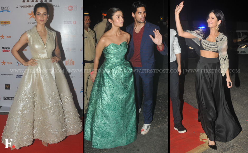 Gowns galore! Kangana Ranaut, Alia Bhatt (with Sidharth Malhotra) and Katrina Kaif. Sachin Gokhale/Firstpost