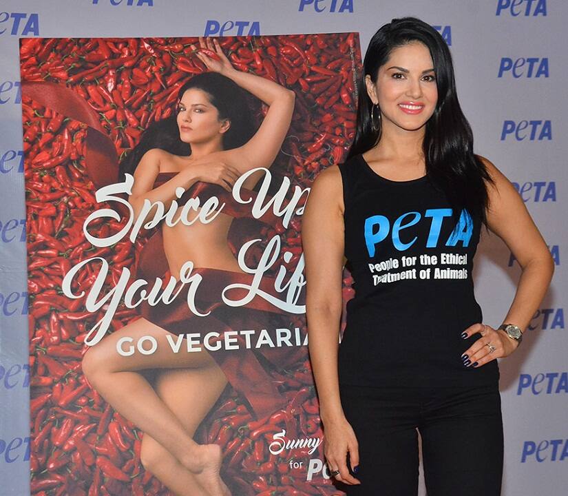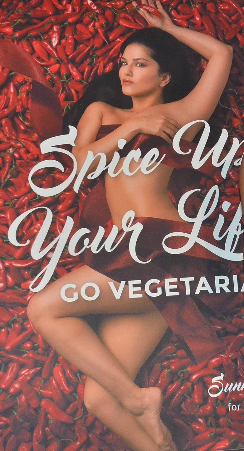 In the poster, Leone is seen bare bodied, resting herself on a bed of dozens of red chilies. The caption reads, ‘Spice up your life’ though Leone emphasises on keeping one’s diet choices simpler and more inclined towards vegetarianism.