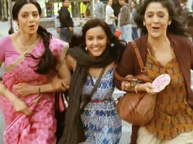 Sujata Kumar and Sridevi in a still from English Vinglish. Twitter/@suchitrak[/caption] In an