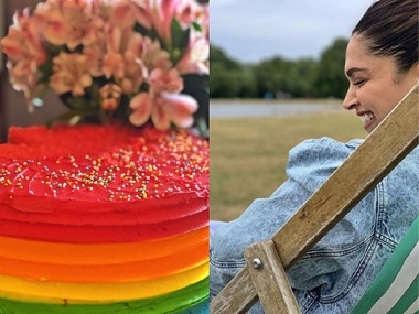 It seems like Ranveer Singh’s birthday celebrations aren’t yet over! After he shared a delightful picture of wife Deepika Padukone getting ‘high on cake’, the latter has finally shared what the birthday boy’s cake looked like! Covered in the colours of the rainbow, the cake looks completely mouthwatering. Deepika shared the glimpse of the dessert on Instagram. Check out Deepika’s post on Instagram
