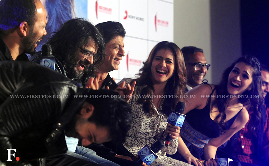 The cast of Dilwale share a light moment at the launch of the sing Gerua. Image Credit: Sachin Gokhale/Firstpost