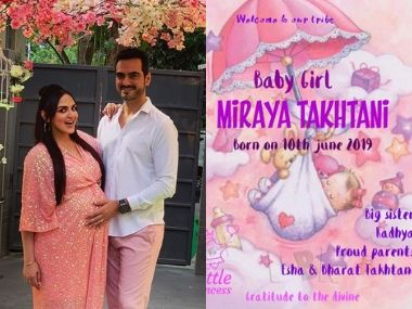 Actor Esha Deol and her husband, businessman Bharat Takhtani, are blessed with a baby girl, their second child together. The couple welcomed their daughter on June 10. They are already parents to daughter Radhya, who was born on October 23, 2017. “Welcome to our tribe Miraya Takhtani. Born on June 10, 2019. Gratitude to the divine,” Esha posted on Instagram. Check out Esha’s post here