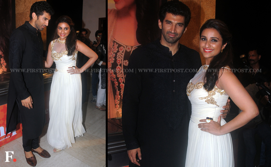 While Aditya Roy Kapur looked dashing in a black pathani suit, Parineeti Chopra cut a beautiful figure in a white gown. Sachin Gokhale/Firstpost