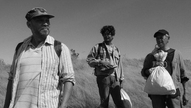 The film builds on Diaz’s 36-minute short Hugaw (‘Dirt Island’) from the 2018 omnibus Lakbayan, and plods through the time and space it occupies with painstaking tedium that is crucial to appreciating the nature of the journey the characters undertake. As is tradition, Lav unapologetically relies on stark black-and-white images with an immobile camera placed several feet away from its subjects, creating the illusion of watching a televised play, with the characters relying heavily on exaggerated histrionics. Expectedly, the lens defiantly steers clear of close ups to forge a palpable distance between the characters and the spectators — a style now synonymous with the director, whose oeuvre is a meditation on the violence sustained by his people through history, first as a colony, and later under fascist leaders. Through the years, Diaz’s films have almost always reminded me of Brutalist architecture in their form and disposition. Both rank high in functionality and disruption to the extent of being overwhelmingly so, and hold a jarring ability to knock out the onlooker with their sheer scale and audacity. To put it simply, they are brutal and unforgiving in their commentary on the criminal nature of social banalities, and Genus Pan is no exception. The film’s action is pinned on a key murder that occurs during the trio’s journey through the wild, followed by a Rashomon-esque retelling of the incident that propels the narrative forward. It generously borrows from Filipino myths and folklore to allegorise the dehumanising nature of the country’s modern-day politics and society. In this light, Diaz’s almost pitiless approach towards capturing the plight of the most socio economically deprived classes proves to be a potent exercise in endurance — of witnessing their despair unfurl in real time. There are instances when the camera demands your patience by coercing you into waiting for its subjects to arrive — for what feels like several long minutes — on deserted, uncaring landscapes. You might just take this as a personal affront, and ask yourself if your time is really that expendable. The answer to that question is what makes all the difference in the viewing experience.