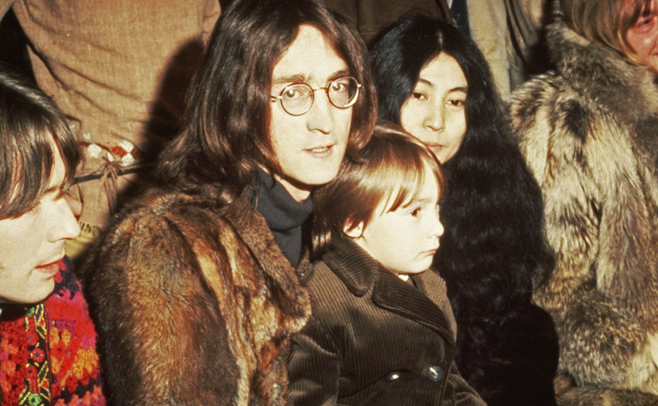 10th December 1968: British musicians Eric Clapton, John Lennon with his wife, artist Yoko Ono and his son Julian - and Brian Jones (1942 - 1969) pictured at a press conference at Internel Studios in Stonebridge Park, Wembley, for the Rolling Stones’ Rock & Roll Circus project. (Photo by Hulton Archive/Getty Images)