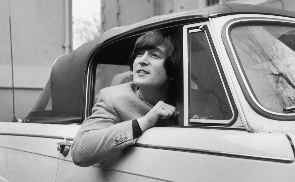 18th February 1965: John Lennon in his Triumph Herald convertible car. (Photo by Evening Standard/Getty Images)