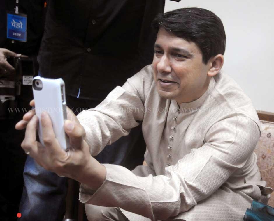 Sriram Nene clicks, presumably his wife with the legendary singer, on his phone. SachinGokhale/Firstpost.