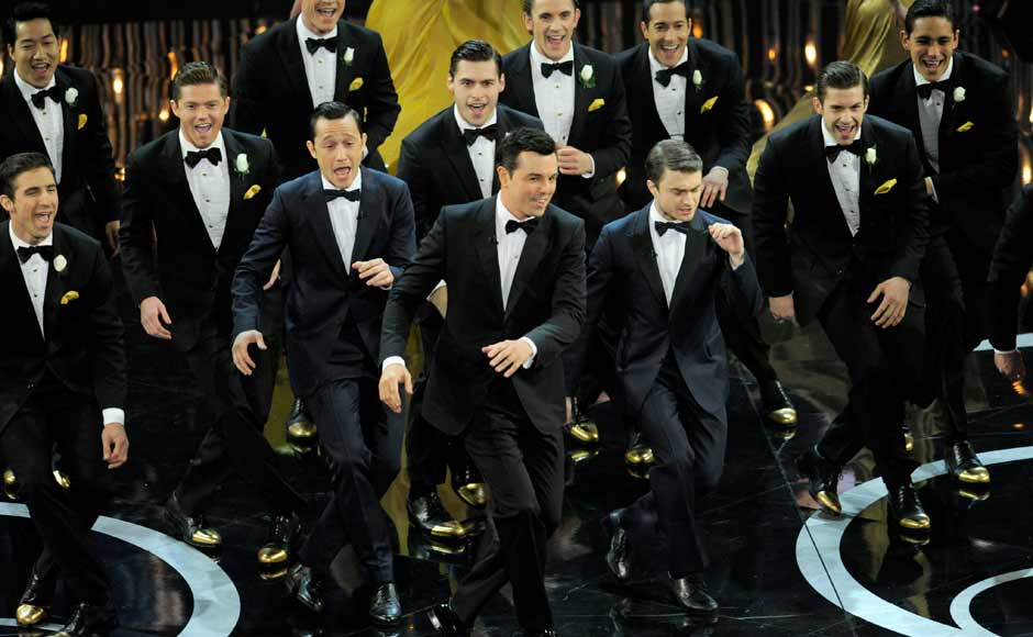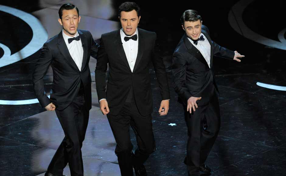 The performance-heavy Oscars also included an opening number featuring Charlize Theron and Channing Tatum, who did a classy dance while MacFarlane crooned Just the Way You Look Tonight. Daniel Radcliffe and Joseph Gordon-Levitt then joined MacFarlane for an elegant musical rendition of High Hopes. Here are the images.