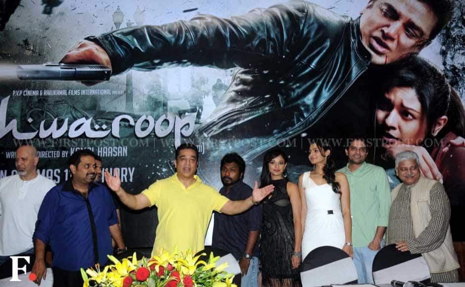 [caption id=“attachment_563262” align=“alignleft” width=“940”]  Andrea Jeremiah, Kamal Hassan and Pooja Kumar at the Vishwaroopam press meet. Sachin Gokhale/Firstpost[/caption] [caption id=“attachment_563264” align=“alignleft” width=“940”]  (from left to right) Loy Mendonsa, Shankar Mahadevan, Kamal Hassan, Pooja Kumar and Andrea Jeremiah at the press meet to discuss Viswaroopam. Sachin Gokhale/Firstpost[/caption] [caption id=“attachment_563266” align=“alignleft” width=“940”]  Kamal Hassan while addressing the media . Sachin Gokhale/Firstpost[/caption] [caption id=“attachment_563272” align=“alignleft” width=“940”]  (from left to right) Andrea Jeremiah, Ehsaan Noorani, Shankar Mahadevan, Kamal Hassan and Loy Mendonsa. Sachin Gokhale/Firstpost[/caption] [caption id=“attachment_563274” align=“alignleft” width=“940”]  Veteran actor Jitendra with superstar Kamal Hassan at Viswaroopam press meet. Sachin Gokhale/Firstpost[/caption] [caption id=“attachment_563279” align=“alignleft” width=“940”]  Kamal Haasan with actresses Pooja Kumar (right) and Andrea Jeremiah (left). Sachin Gokhale/Firstpost[/caption] [caption id=“attachment_563294” align=“alignleft” width=“940”]  Actresses Pooja Kumar (left) and Andrea Jeremiah (right) . Sachin Gokhale/Firstpost[/caption] [caption id=“attachment_563322” align=“alignleft” width=“940”]  Jitendra with Kamal Hassan after the press meet. Sachin Gokhale/Firstpost[/caption]
