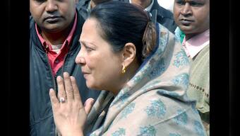 Moon Moon Sen reacts after the death of her mother legendary actress Suchitra Sen at a hospital in Kolkata on Friday. PTI