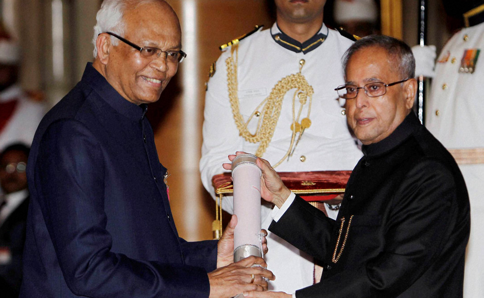 President Pranab Mukherjee presents Padma Vibhushan award to eminent scientist Raghunath Anant Mashelkar during Padma Awards 2014, Rashtrapati Bhavan in New Delhi on Monday. PTI