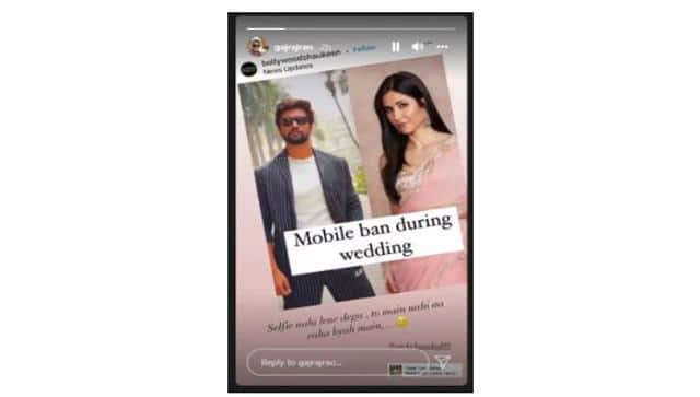 The buzz around the biggest wedding of the year – Katrina Kaif  and Vicky Kaushal’s destination wedding is getting bigger by the day. The couple is set to tie the knot on 9 December at Ranthambore’s Six Senses Fort.  While many details regarding their wedding suite, security, hotel bookings, car rentals, and guest list have been already out, new report suggest that Vicky and Katrina have set SOPs for their guest and they were also made to sign an NDA clause. Vicky Kaushal’s Love Per Square Foot co-star Gajraj Rao on Tuesday confirmed the wedding. Yes, you read it right! He took to his Instagram story and reacted on a wedding report that said ‘Mobile Ban During Vicky Kaushal and Katrina Kaif’s Wedding’. On this, Gajraj wrote if this is the policy then I won’t come. “Selfie nahi lene dega, to mai nahi aa raha byah main…” read the caption on his story. Take a look: