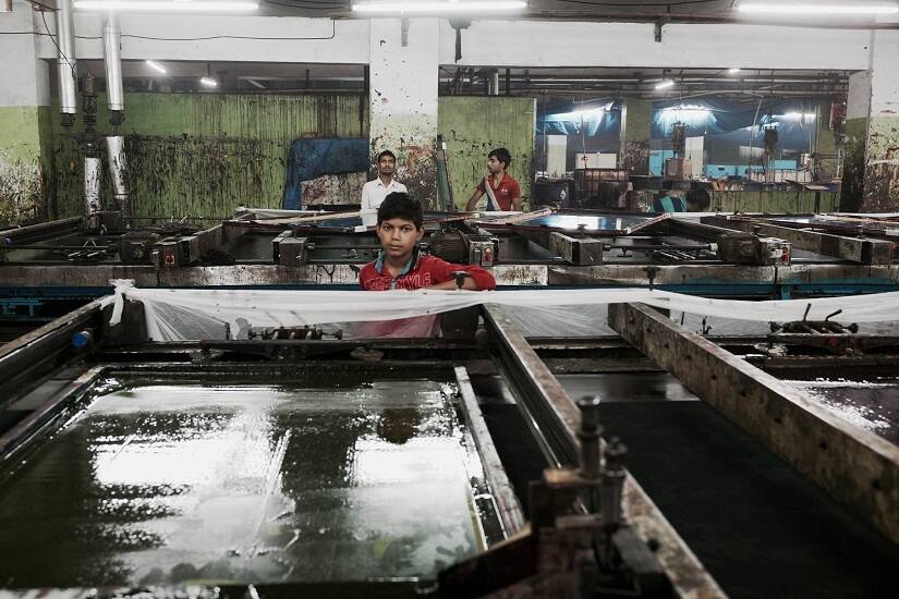 The other thing is slow violence. As a five-year-old, there was something fascinating about explicit, extreme contrasts — if the punch doesn’t have the dishoom-dishoom sound, we might experience it less. It’s easy to kill creatures in a video game. Like that virtual violence, the pollutants we are generating remain virtual or fictional — till they hit us. Maybe an animal feels more when they see a chrysanthemum growing in January instead of April. How do you generate that foreboding, the terror of what that means? To depict that is a big representational challenge. What you just said about denial and our comforts making us deny our role reminded me of one of the strongest scenes in Machines: where the factory owner says he keeps the labourers’ salaries low because they would spend the extra money on bidis or alcohol. That is class blindness and denial. The other thing I remember is that in an interview you gave, you mentioned that you wanted to capture the stench of ammonia in the factory — which takes us back to depicting the invisible. I’m just a very olfactory person. I am very moved by smell. I even choose my partners by it. I am wary of it, but I use it in my art as well. But films are nonetheless a two-dimensional medium. You get sound and image, you have make do with that, but I try to generate a kind of synaesthesia. I believe that you first visited the factory in Machines when you were a small child. What stayed with you from then? Sense perceptions. A child doesn’t have the language to articulate the world, they can only feel. I was three feet tall and there were all these sweaty people, very big. And the machines were very big. It was one of my foundational experiences to have seen that, even though I was only a tertiary participant. As a child, I was a ghost there. My whole life it was brewing, I think. Then three things happened. First I was given a warning that I would get kicked out [of film school] if I didn’t make something. But I didn’t identify or relate with anything in my immediate environment. Where was that? In Valencia, which is 40 miles from Los Angeles. Very white and very dull. Then I was googling for inspiration and googled ‘25 Greatest Photographers Ever’ and came across Sebastian Salgado’s book called Workers. I was hypnotised. It literally took me back to my exaggerated perspective, that of a child. Also around the same time in 2013, the Rana Plaza incident in Bangladesh happened, where a garment factory collapsed and over a thousand people passed away. This was also one of the catalysts that brought this into the zeitgeist. I could have made this film in a bread factory or a Pepsi factory. I mean, the whole world is built on slavery of some kind or another. But the earliest rhetorics of working class conditions and anthropology of workers was articulated for some reason in textile mills. Yes, true. So did you work out why the cloth matters? I mean, there is an obvious visual contrast between these reams of fabric and the often meagrely-clothed men working to create them… Yes. Which some of the girls in my school in California found really hot. Though I wasn’t at all eroticising them in that way. How old were you when you started shooting? Twenty-two. It took me three years to finish the film. I’m 26 now. That time I had, when I was studying other things, was helpful. I didn’t have a producer for the longest time. It wasn’t very expensive at first: I had my own equipment, my best friend from film school, Rodrigo Trejo Villanueva, agreed to be my cinematographer, and we have a synergy. I’m somebody who worries a lot, but he didn’t give a f**k about important deadlines. I learnt patience from him. It’s the most basic fact of meditation: to calm down and not be tremored by 20 different ideas. When we lose our anally-retentive postmodern sense of control, that’s when we can let go. I do believe that creativity needs a kind of looseness — your mind needs to free itself of the tautness of deadlines, and be relaxed enough to make wild juxtapositions in your head.
