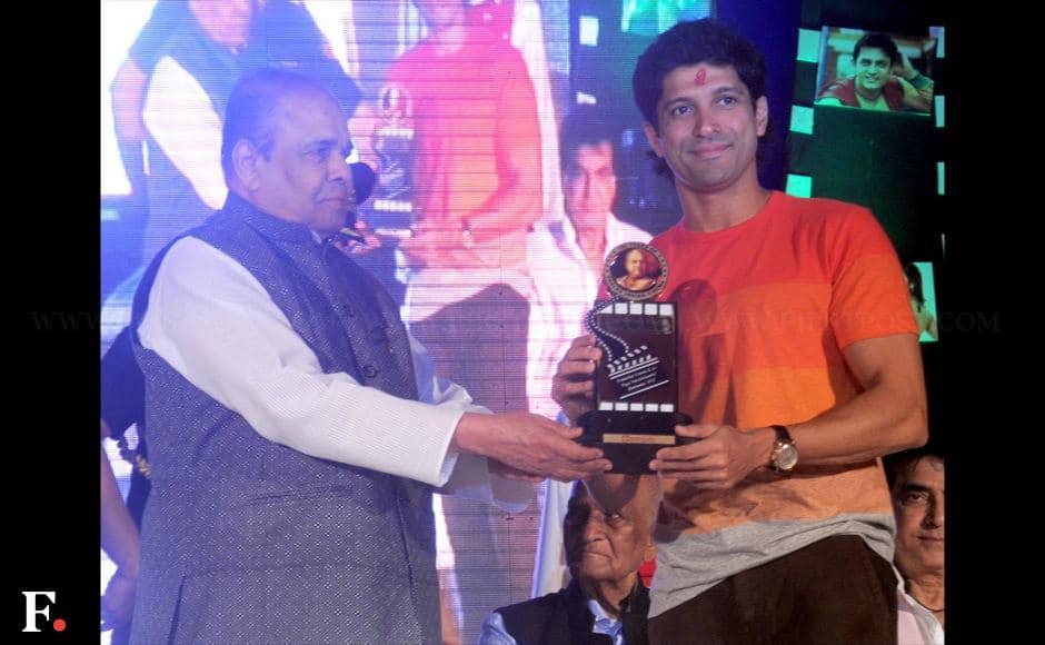 At the 145th edition of the Dadasaheb Phalke awards, held at Bhaidas Hall in Juhu, Farhan Akhtar and Juhi Chawla were honoured for their outstanding performances in their respective films ‘Bhaag Milkha Bhaag’ and ‘Gulaab Gang’.