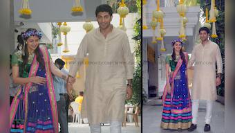 Hema Malini's Ahana Deol and fiance Vaibhav Vora during her mehendi ceremony. Sachin Gokhale/Firstpost