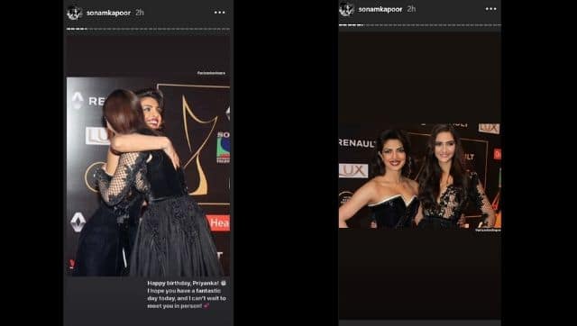 Sonam Kapoor Ahuja also posted two pictures of herself with Jonas from an award function. Here is Ahuja’s post [caption id=“attachment_8613821” align=“alignnone” width=“640”]  Sonam Kapoor’s Instagram stories for Priyanka Chopra Jonas. Instagram[/caption] Fashion designer Manish Malhotra posted a picture with Jonas from one of his fashion shows and penned down a birthday wish for her in the caption. He also shared an anecdote from working with her on the song ‘Desi Girl.’ Check out the post here