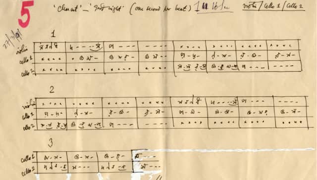 Agantuk Indian notation[/caption] This writer has had privilege of being present at Satyajit Ray’s music recordings at HMV studio. At the music recording of Agantuk (The Stranger), Ray’s last film, he was sitting beside the master and listening to the recording of various compositions. In the sequence where the lawyer (played by Dhritiman Chatterjee confronts the stranger (enacted by Utpal Dutt), the background score seemed to exude a strong influence of Beethoven. When this writer shared his thoughts on this score with Ray, he remarked: “Isn’t it (the composition) good?” Sandip goes on to inform that his great father had “experimented” on several occasions while scoring music and in various ways. “People sometimes miss out on fathoming this experimentation. Father had even reversed and played Western Classical albums in a few films. He had adopted this technique, for example, in Jalsaghar (The Music Room). While Jalsaghar’s overall music was composed by Ustad Vilayat Khan, there were moments in the film which father felt demanded a background score for which Vilayat Khan had not scored a musical composition. Father had also gone for the reverse method with Western Classical records in Paras Pathar (The Philosopher’s Stone), but no one could figure this out while watching the film,” reveals Sandip. Then, when Satyajit Ray acquired a Uher tape-recorder, he had embarked on a good deal of improvisation while penning the score. The speed of a spool in the Uher could be changed in four different ways. This allowed Ray to improvise while playing music. After a music recording session was through, Ray got all the music ‘takes’ transferred to the Uher. In turn, Ray played the music on his Uher in his study at four disparate speed levels and came up with variations. “An instance that comes to mind immediately is the hypnotism sequence in Sonar Kella (The Golden Fortress). That music was heard in the film at a slowed down speed,” informs Sandip. “A hurdle which father would often face was not being armed with a particular Western instrument he would have liked to put to use for a certain score. Instruments like the oboe, for instance. String instrumentalists, who played the violin, were, of course, available. But, their efficiency in playing the violin varied. But, brass instrumentalists like the oboe, trombone, bassoon, trumpet or horn players were virtually absent during father’s time. He used the trombone in Goopy Gyne Bagha Byne when Goopy and Bagha magically landed in the snowsape. That musical motif drew blood from the Western Classical genre. Instrumentalists who played Western instruments gradually left for Mumbai and, in time, dwindled. Father, in fact, had to source a cellist from Chennai, who later also played for me,” says Sandip, dwelling on the obstacles one faced if the background score was inspired by Western Classical music. Sometimes, otherwise skilled performers failed to adapt to film music, which was another roadblock for Satyajit Ray. [caption id=“attachment_12195092” align=“alignnone” width=“640”]