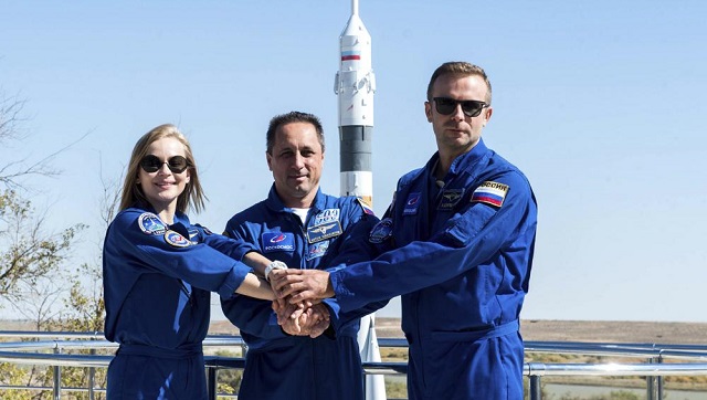 In this handout photo released by Roscosmos, Actress Yulia Peresild, left, director Klim Shipenko’ right, and cosmonaut Anton Shkaplerov, members of the prime crew of Soyuz MS-19 spaceship pose at the Russian launch facility in the Baikonur Cosmodrome, Kazakhstan, Sunday, 19 September, 2021 | (Roscosmos Space Agency via AP)[/caption] Shipenko, 38, has made several commercially successful movies, including Kholop (Serf), a 2019 movie that set a Russian box office record. He also described the training as tough. “Of course, we couldn’t make many things at the first try, and sometimes even at a third attempt, but it’s normal,” he said. One of Shipenko’s previous films, Salyut-7, told the real story of a challenging 1985 mission of two Soviet cosmonauts sent to resuscitate an abandoned space station. He described the four-month training course as very intensive, adding that while it didn’t turn him and Peresild into professional astronauts it made them well prepared for the mission. Shipenko said he’s thrilled to be the first filmmaker in space and is keen to experiment with lighting, camera settings and other technical aspects. Once on the space station, Shipenko said he will don a T-shirt that he always wears when he begins to shoot a new movie. Shkaplerov insisted that his entertainment-world crewmates are fully ready for the flight after their fast-track training. “No one had that experience before: to prepare people who had no relation whatsoever to the space program for a space flight,” he said, adding that it could be useful in the future if a need arises to urgently send an outside expert into orbit. Dmitry Rogozin, head of the Russian state space corporation Roscosmos, was a key driving force behind the project. Rogozin described making the world’s first feature film in space as a chance to raise the nation’s space prestige. “Movies long have become a powerful instrument of propaganda,” he said in June, arguing that the new film would help counter what he described as Western efforts to “humiliate” the Russian space program. [caption id=“attachment_10026051” align=“alignnone” width=“640”]