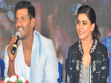 PS Mithran, Vishal and Samantha Akkineni at the teaser launch of Irumbu Thirai[/caption] Earlier, the film was announced as a Pongal 2018 release. Clarifying about the delay, Vishal said, “I know so many friends who were praying that I shouldn’t contest in RK Nagar elections. Director PS Mithran was also one of them (laughs). He wanted to complete the project and release it for Pongal 2018. But since I was busy with the election, we had postponed our shoot, and that’s why the release date has been changed to 26 January.” “I know that I’m honest and I’m faithful to my conscience,” says Vishal Talking about various allegations leveled against him of late, Vishal, in an ambiguous tone, said, “Ever since we took charge in Producers Council and Nadigar Sangam, we have faced both brickbats and encouraging words from various people. But, I’ve never cared about those who continuously try to bring us down with their slanders. Whenever I face the mirror, it reflects my real self. I know that I’m honest and being faithful to my conscience.” Vishal is quite upbeat about how Irumbu Thirai has shaped up. The team will wrap up the entire shooting today, after which the post-production will kick-start in full swing. “I always wanted to be a part of a stylish film that connects with today’s youngsters. That’s when Mithran narrated me the story of Irumbu Thirai. I thought it would be a perfect follow up to Thupparivaalan. Cinematographer George C Williams’ enthusiasm encouraged me more to take up this project. And George has a great track record with Samantha in two super-hit films (Vijay’s Kaththi and Theri). So, I believe the success story continues in Irumbu Thirai too. The audio launch of our film will happen in Malaysia on 6 January at the grand Natchathira Kalaivizha (Stars’ Night), which will see the likes of Rajinikanth and Kamal Haasan in attendance,” said Vishal. “Irumbu Thirai is going to be a very important film in my career,” says Vishal On sharing screen space with Samantha for the first time, Vishal said, “Irumbu Thirai is going to be a very important film in my career. I enjoyed working on this project, both as an actor and a producer. It’s my first-time collaboration with Samantha. She’s such a lovely person first, and by profession, she’s a beautiful heroine. She truly lit up the sets whenever she was shooting, and we had great fun working together. Having a great co-artist is nice. The highlight of the film will be the love track between us, and it has come out really well. The entire film has been a fantastic journey.” “Irumbu Thirai talks about the ill effects of technological advancements. How others can exploit our information without our knowledge is presented neatly in the film. We wanted to show how dangerous the cyber world is through this movie. It’s almost like cyber-terrorism. Since we have talked about real issues, we made sure that there are no preachy dialogues in the film,” he added. “Nobody in the industry treats me differently after marriage,” says Samantha Asked if she is being treated differently by the film fraternity after marriage, Samantha said, “I started shooting three days after my marriage. Nothing has changed now. I don’t feel any different and nobody treats me differently. 2018 has arrived, and I have seen a lot of change.” Samantha sounded very confident about the film, which has music composed by Yuvan Shankar Raja. “I felt like Vishal was younger than me because he had incredible energy on the set. It was wonderful working with him. His look and performance in the film are definitely his best. The film looks very stylish because of George’s excellent cinematography. I’m very very confident that Irumbu Thirai will work,” said Samantha. “Irumbu Thirai has been a magnificent journey for me,” says director Mithran Director PS Mithran thanked Vishal for trusting him with the project, which has changed his life. “Irumbu Thirai has been a magnificent journey for me. From conceiving the story of this film to wrapping up the shooting tomorrow, it’s been four years. This movie has already witnessed three elections of Vishal (laughs). I have narrated this story to a lot of producers in the industry. When Vishal heard the narration, he immediately gave his consent. Likewise, when I told the story to Samantha in Hyderabad, she agreed to come on board the same day.”