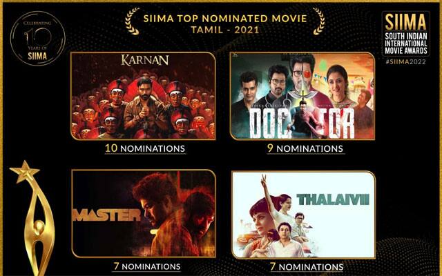 South Indian International Movie Awards (SIIMA) is the largest and the most viewed film awards show in South India and enjoys over 50% television reach across the South Indian region. SIIMA is a true reflection of South Indian cinema and connects the Global South Indian Film fans to the South Indian Film Stars. The 10th Edition of SIIMA Event will be held in Bengaluru on 10th and 11th September 2022 Brinda Prasad Adusumilli, Chairperson of SIIMA has announced SIIMA Nominations for the films released in 2021 in the 4 South Indian Languages. _Pushpa: The Rise_ (Telugu), _Karnan_ (Tamil), Roberrt (Kannada) and _Minnal Murali_ (Malayalam) are leading the SIIMA Nominations for the 2021 SIIMA in most of the popular categories in their respective languages. In Telugu, Pushpa: The Rise, directed by Sukumar and starring Allu Arjun with 12 Nominations is leading while Akhanda starring Balakrishna and directed by Boyapati Srinu with 10 Nominations is in the second postion. Uppena & Jathi Ratnalu with 8 Nominations each are sharing the third position. In Tamil, Mari Selvaraj’s Karnan starring Dhanush is leading with 10 nominations while Doctor Sivakarthikeyan and directed by Nelson with 9 Nominations is in the second position. Master and Thalaivii with 7 Nominations each are sharing the Third position. [caption id=“attachment_11068311” align=“alignnone” width=“640”]  SIIMA Awards 2021[/caption] In Kannada, Roberrt, directed by Tharun Sudhir staring Darshan is leading with 10 categories while Garuda Gamana Vrishabha Vahana directed by Raj B Shetty starring Rishab Shetty with 8 Nominations is in the second position and Yuvaratnaa Directed by Santhosh Ananddram starring Puneeth Rajkumar with 7 Nominations is in third position. [caption id=“attachment_11068321” align=“alignnone” width=“640”]  SIIMA Awards 2021[/caption] In Malayalam, Minnal Murali, directed by Basil Joseph starring Tovino Thomas is leading with 10 Nominations while _Kurup_ starring Dulquer Salman and Directed by Srinath Rajendran with 8 Nominations is in the second position. Malik and directed by Mahesh Narayan and Joji directed by Dileesh Pothan both starring Fahad Fasil with 6 Nominations each are sharing third position. [caption id=“attachment_11068331” align=“alignnone” width=“640”]  SIIMA Awards 2021[/caption] For the South Indian film industry 2021 has been a benchmark year with movies like Pushpa: The Rise, Karnan, Minnal Murali, Akhanda, Thalaivii, Master, Maanadu, Sarpetta Parambarai, Uppena, Roberrt and Doctor garnering national recognition along with commercial success in the respective languages. The winners are chosen by an online voting system. Fans can vote for their favorite stars and movies on www.siima.in and the Facebook page of SIIMA. Read all the Latest News , Trending News and Entertainment News here. Follow us on Facebook, Twitter and Instagram.