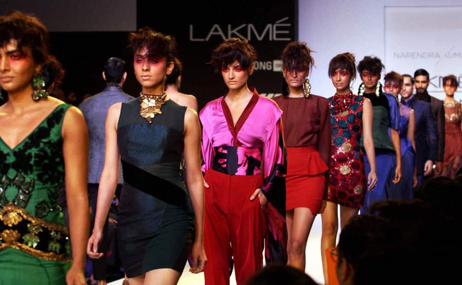 [caption id=“attachment_1432003” align=“alignleft” width=“940”]  Sonakshi Sinha showcases a creation by designer Manish Malhotra on the first day of the Lakme Fashion Week in Mumbai. AFP[/caption] [caption id=“attachment_1431989” align=“alignleft” width=“940”]  Indian models walk the ramp on the second day of the Lakme Fashion Week in Mumbai. AFP[/caption] [caption id=“attachment_1432005” align=“alignleft” width=“940”]  Kajol Devgn, Tanisha and Urmila Matondkar during on the opening day Lakme Fashion Week 2014, in Mumbai. PTI[/caption] [caption id=“attachment_1432007” align=“alignleft” width=“940”]  Ameesha Patel, Lisa Haydon, Kangana Ranaut and Sophie Choudry pose for photographers on the first day of the Lakme Fashion Week. AFP[/caption] [caption id=“attachment_1432009” align=“alignleft” width=“940”]  Models walk the ramp displaying the collection of designer Narendra Kumar on the first day of the Lakme Fashion Week. PTI[/caption] [caption id=“attachment_1432011” align=“alignleft” width=“940”]  Models walk the ramp on the first day of the Lakme Fashion Week 2014 in Mumbai. PTI[/caption] [caption id=“attachment_1432015” align=“alignleft” width=“940”]  Indian models showcase creations by Drvv on the second day of the Lakme Fashion Week. AFP[/caption] [caption id=“attachment_1432019” align=“alignleft” width=“940”]  An Indian model showcases a creation by INIFD during the Gen Next show on the second day of the Lakme Fashion Week. AFP[/caption]
