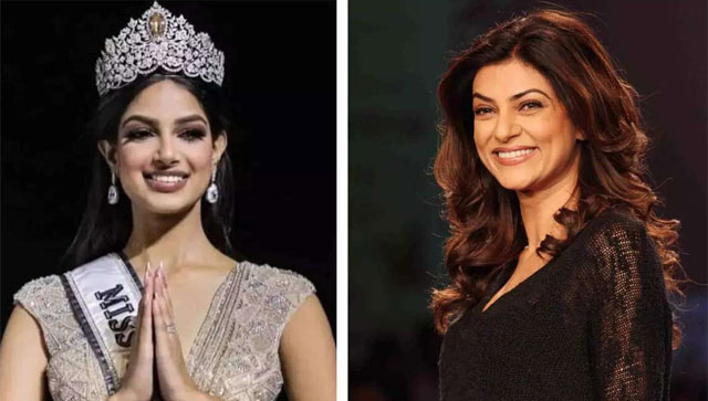 Former Miss Universe Harnaaz Sandhu ’s recent outing at the 71st Miss Universe turned quite a lot of heads with her special ‘avatar’. Paying tribute to former beauty queens Sushmita Sen and Lara Dutta, Sandhu donned a beautiful gown with a cape that had sketches of both divas. Pictures of Sandhu, who wore the gown for her final walk, have gone viral since then and people are totally loving it. Reacting to the same, while Lara Dutta has sent a heartwarming message for Sandhu, now Sushmita Sen has also shared her heartfelt thoughts on the dress. In her recent Instagram live, Sen was answering fan questions among whom one also asked for her reaction to Harnaaz Sandhu’s Miss Universe outfit. Appreciating Sandhu’s gesture, Sen said, “Yes, I saw her gown. I think it’s a beautiful tribute. I am waiting to give her a hug in person to thank her for it. Because she carried with her on such an important walk and moment…The legacy of her country. To see Lara and me there with her was like yes. So Harnaaz, if you are watching, the tightest hug awaits you in person, my darling. You made us proud and continue to make us proud. Thank you for that.” Watch: