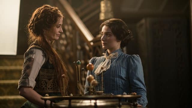 The protagonists in The Luminaries are “astral twins”: two (unrelated) individuals who were born at the exact same moment, under the same sky, and therefore share a common destiny. They meet — Anna Wetherell (Eve Hewson) and Emery Staines (Himesh Patel) — on a ship to New Zealand, where both are hoping to prospect for gold. It is the very end of their voyage, but Anna and Emery are so affected by the other’s presence that they agree to meet on shore for supper later that evening. He hands her a note with the name and address of his hotel. Of course, when two individuals are ordained to come together by the stars, then narrative tension demands that they be kept apart. And so it is with Anna and Emery, who find themselves on very different paths, courtesy a series of unfortunate events, or rather the machinations of unscrupulous parties. The unscrupulous parties in this case are Lydia Wells (Eva Green) and her paramour, a former convict by the name of Frank Carver (Marton Csokas). While her husband, Crosbie Wells (Ewen Leslie), is away prospecting, Lydia runs a fortune-telling establishment much favoured by the entranced gentleman in the area. It is Lydia who explains the concept of “astral twins” to Anna, having employed her as an apprentice. Lydia may appear to be a friendly benefactress, but Anna soon realises that her employer/landlady has precipitated her present dire circumstances and separation from Emery. Anna also uncovers Lydia and Frank’s plot to murder a recently-returned-home-flush-with-gold Crosbie. Her plan to save Crosbie is only partly successful: he escapes with his life, but his gold is long gone. The stolen gold runs like a seam through this story, turning up in odd places and ending up in the most unlikely hands. Its circuitous journey is mirrored by the people who come into contact with it, knowingly or otherwise. Perhaps the gold too, like the characters in this story, isn’t exempt from the decrees of Fate. [caption id=“attachment_8624451” align=“alignnone” width=“640”]  Still from The Luminaries. Image via BBC/Netflix[/caption] For Fate is what drives this plot. While The Luminaries novel, by Eleanor Catton, made the relation between zodiac signs and her characters explicit, in this screen adaptation, it is evinced more through Lydia’s dialogue. But even unstated, its hand is visible in the way the characters are all pushed towards an inevitable climax.