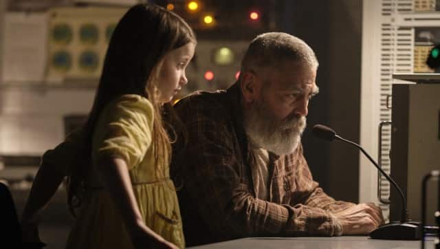 We don’t know what caused the end of the world in The Midnight Sky. The film begins with a vague “3 weeks after the event.” When characters are wearing respirators, and birds are dropping dead to the ground, it isn’t hard to guess. What we do know is Augustine (Clooney) decided to stay behind at a research station in the Arctic to protect “his life’s work” (to find habitable planets), while his fellow scientists left to be with their families. He stays behind because he is dying of cancer, and doesn’t have much time left on Earth anyway. When he finds a little girl named Iris (Caoilinn Springall), seemingly left behind during the evacuation, it spurs him to contact the crew returning home from a space expedition to Jupiter’s habitable moon, K-23. With the whole world gone dark, Augustine and Iris embark on an impossible journey to a weather station to warn them. In parallel, the spaceship crew — comprising Commander Adewole (David Oyelowo), Sully (Felicity Jones), Maya (Tiffany Boone), Mitchell (Kyle Chandler), and Sanchez (Demián Bichir) — have to deal with their own potentially fatal challenges in outer space. They must deal with them without the assistance of mission control due to radio silence for over two weeks. [caption id=“attachment_9142001” align=“alignnone” width=“640”]  Caoilinn Springall as Iris and George Clooney as Augustine in The Midnight Sky[/caption] Martin Ruhe’s photography of the Arctic Circle, much like outer space, paints a picture of the inexpressible alienation and smallness we feel when confronted by an empty vastness. Wide shots used to reflect emotional distance as well as scale declare the kind of sci-fi movie it wants to be. But when the poetry of science fiction is engineered like a product in an assembly line, it leaves you cold. Bereft of fresh ideas, Clooney fills up the void with an Alexandre Desplat score, which gives the movie an enveloping feel of the scenery and space. But it doesn’t harmonise the visuals in any meaningful way, often overpowering the dialogue and overplaying the emotions in a scene. [caption id=“attachment_9142031” align=“alignnone” width=“640”]  Felicity Jones as Sully and David Oyelowo as Commander Gordon Adewole in The Midnight Sky[/caption] The Midnight Sky juggles three different genre templates in one film. There are the obvious sci-fi elements: a world-ending ecological disaster, space colonisation, and the striking visuals that come with them. In particular, a zero-gravity scene of floating blood droplets makes for a morbidly fascinating spectacle. Then there are the survival thriller elements that come from the harsh conditions of space and the Arctic. Augustine and Iris trudge through radioactive blizzards, escape a fall through thin ice, and ward off a pack of wolves. In these moments where Augustine’s survival becomes analogous to mankind’s survival, the inherent pressure adds to the tension. [caption id=“attachment_9142011” align=“alignnone” width=“640”]  Tiffany Boone as Maya in The Midnight Sky[/caption] Deep in space, the film attempts to recreate a Gravity-like visceral experience of a spacewalk. When the spaceship is struck by meteors, Sully, Maya, and Adewole go out to repair the communications, only to be struck by more meteors mid-mission. Finally, there’s the redemptive drama: Augustine is haunted by his past and is trying to make amends for it.