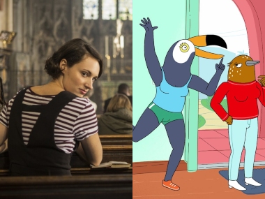 “Tuca & Bertie = BoJack Horseman + Fleabag,” is one of the first thoughts that came to my mind when I finished watching three episodes of Lisa Hanawalt’s animated series. In that moment, I’d thought that Tuca & Bertie shared the female gaze and sheer honesty of Fleabag, and the oft-casual-sometimes-heart-breaking existential angst of BoJack. My mathematical analysis may not have been too accurate, in retrospect. Having watched Fleabag and Tuca & Bertie in entirety now, I see them as companion pieces of pop culture, not just because they are so deeply rooted in women’s lives, but because of the view they present of the omnipresence of pain and trauma. For the uninitiated, Fleabag is Phoebe Waller-Bridge’s show about a 30-something woman in London, mourning the loss of her best friend who committed suicide, navigating the strained relationships she shares with her sister and father (who has lost his wife and is now romantically interested in the girls’ godmother), and using sex as an escape from dealing with her emotions. Tuca & Bertie uses the familiar trope of best friends with contrasting personalities, building a life in the big city, juggling jobs, relationships and families. It adds a refreshing twist to this trope by meditating on what co-dependence and emotional support can mean in healthy friendships. [caption id=“attachment_6691641” align=“alignnone” width=“825”]  Brett Gelman and Phoebe Waller-Bridge in Fleabag[/caption] The perspective in Fleabag is inherently female without giving into hackneyed depictions of ‘sisterhood’ or female friendships. In which other show have you heard a character deliver a monologue on how hair can be life-defining for a woman, without the self-indulgence of Sex and the City or the shouty, tragic tone of Indian shampoo ads? Or watched a sibling expertly predict when her sister is on her period, in a manner that’s far different from PMS jokes? Simultaneously, its meditations on love and life are universal. When Andrew Scott’s character says, “Being a romantic takes a hell of a lot of hope. I think what they mean is when you find somebody that you love it feels like hope,” he speaks for all of us. This is a quality the show shares with Tuca & Bertie. Tuca, who has lost her mother, dreads phone calls from her siblings during the holidays. When they don’t call one holiday season, she’s filled with a sense of abandonment and loneliness, endlessly checking her phone for that one message, one missed call, which is a sign that they tried to contact her. The plots of both shows are driven forward by life experiences which include, but are not limited to, asking a boss for a promotion; witnessing your father fall in love with your condescending, insufferable godmother; dealing with quitting alcohol; and lying about having a miscarriage so that your sister doesn’t have to reveal that she just went through one. And then there are those life experiences that are marked by pain. * It’s not often that one sees a show – an animated one at that – depicting a story of child sex abuse. Tuca & Bertie does it with the kind of sensitivity that makes you want to take Bertie’s hand in yours and tell her that you’re sorry, that you hope she’s healing. The series also traces the impact this early experience has had on Bertie, and her inability to commit to long-term relationships. There’s another scene in the show where Bertie is sexually harassed by a colleague who makes an inappropriate comment about her body. She makes a trip to HR, only to find a woman employee offer that all-too-familiar explanation: “He probably meant it as a compliment”. One of her boobs, which is the target of said inappropriate comment, has a very different reaction to the incident. She drops right out of Bertie’s chest, says she has had enough of such behaviour, and walks off – to get a drink. [caption id=“attachment_6691671” align=“alignnone” width=“825”]  Tuca & Bertie in the show’s intro sequence. Netflix[/caption] Fleabag’s protagonist is haunted by the deaths of two people she loved – her mother and her best friend, Boo. In the latter’s death, she is thought to have played a part, and the guilt often causes her to freeze and break down. Subtly, we are told that Fleabag doesn’t have friends to call her own. The breaking of the fourth wall – deliciously and effectively executed – makes the viewer, and only the viewer, actually privy to the thoughts she wants to share. Because she has no one else she can tell these stories to. Boo’s death feels personal for the viewer. At her mother’s funeral, Fleabag asks Boo what she should do with all the love she has for her mum now that she’s gone; Boo’s instantaneous response is that she can give it to her. Also read on Firstpost — Fleabag Season 2 review: Phoebe Waller-Bridge embraces imperfections as she achieves comedy perfection In both shows, it seems as though pain is often waiting for the protagonists at the corner of the street, if not at the doorstep of their own homes. This is how trauma plays out in most women’s lives, not as “plot points” but rather as everyday phenomena that are impossible to shrug off or forget. As a character in Fleabag poignantly put it: “…Women are born with pain built in. It’s our physical destiny. Period pain, sore boobs, childbirth, you know. We carry it within ourselves throughout our lives.” As with physical pain, so with the emotional kind. [caption id=“attachment_6691681” align=“alignnone” width=“825”]  Phoebe Waller-Bridge and Andrew Scott in a still from Season 2. Amazon/BBC[/caption] * If watching some of your own life experiences on the screen is cathartic, watching someone triumph over them is even more so. This happens to an extent in both shows. Bertie and Tuca organise a sexual harassment awareness session at the workplace, where Bertie’s harasser is outed. Bertie is also able to c