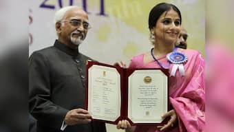 New Delhi: Talents from India’s $2-billion Indian movie industry received from Vice President Hamid Ansari the 59th National Film Awards across various categories here on Thursday. Veteran Bengali actor Soumitra Chatterjee was also honoured with the Dadasaheb Phalke award, highest honour in Indian cinema at the event. Regional cinema dominated the award function, while Bollywood maintained a low key this year. [caption id=“attachment_298040” align=“alignleft” width=“380” caption=“Vice-President Hamid Ansari gives the Best Lead Actress Award to Vidya Balan at the 59th National Film Awards 2011 function in New Delhi on Thursday. PTI”]