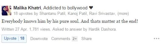 there’s a Quora thread that discusses how Salman is really like in real life. One would imagine that a thread like this would attract both acutely negative and positive responses, but apart from the one odd response that calls Salman “a normal human being”, whose job it is to entertain, most of the responses call him a “pure soul” and “awesome human being”, among other things. One of the first comments is from a namesake, Salman Warwande. The first few lines had us believe there was a pros and cons list in the making, but we were wrong; his response is just plain confusing. First, he starts with a list of things that Salman has been accused of, including being involved with the underworld, his controversial dating life, and then starting a charity to evade taxes. However, he ends his response with: “I hope, I have been able to sum up everything of significance. Am so sure he’s a hero like every Bhaijaan crazy fan portrays him to be.” He comment is upvoted 476 times, though. Another fan, Anamika Rao, starts out by bringing up his neurological ailments; Trigeminal neuralgia, she says, causes an intense nervous pains, almost bad enough to commit suicide. She then lists out Salman’s accomplishments: painting a village in Karjat, Being Responsible “for several underprivileged people for their Education and Healthcare”, and one particular “accomplishment” we don’t quite understand: “He is man of words, there are many stories about that, you ask him, and it will be yes.”