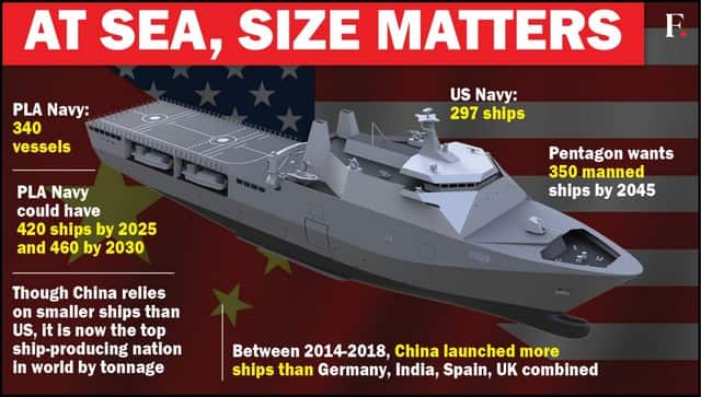 But the problem is that China is aiming to have 420 ships by 2025 and 460 by 2030, as per The Pentagon.