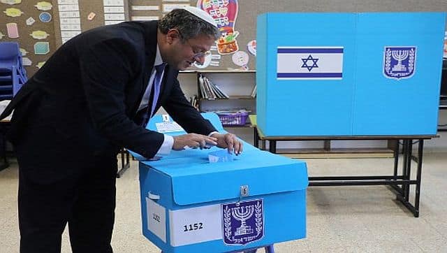 to become Israel’s third largest party, gaining 14-15 seats. The two will push for expansion of Israeli settlements in the West Bank, and rejection of any two-state resolution with the Palestinians. A coalition including Ben Gvir, Smotrich and Israel’s two conservative ultra-Orthodox religious parties (Shas and UTJ, 17-18 seats collectively) would be bad news for advocates of LGBTQI+ rights in Israel and abortion rights for women. [caption id=“attachment_11561541” align=“alignnone” width=“640”] Israeli far-right lawmaker and leader of the Otzma Yehudit (Jewish Power) party Itamar Ben-Gvir casts his vote at a polling station in the West Bank town of Hebron. AFP[/caption] The picture for the centre-left anti-Netanyahu camp is a mixed bag.